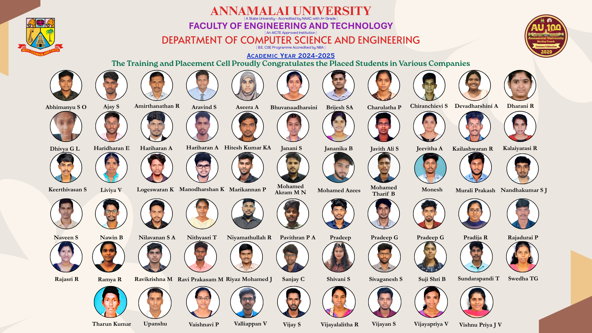 The Department of Computer Science and Engineering, along with the Faculty of Engineering and Technology Training and Placement Cell, works dedicatedly to ensure that eligible students of the department are provided with the right opportunities in the IT sector to highlight their skills and talent.The department also has faculty members who serve as placement coordinators. The primary job of the placement coordinator includes acting as a point of contact between the Training and Placement Cell and the students of the department and also mentoring the students and providing them with guidance in choosing the right path for their career.