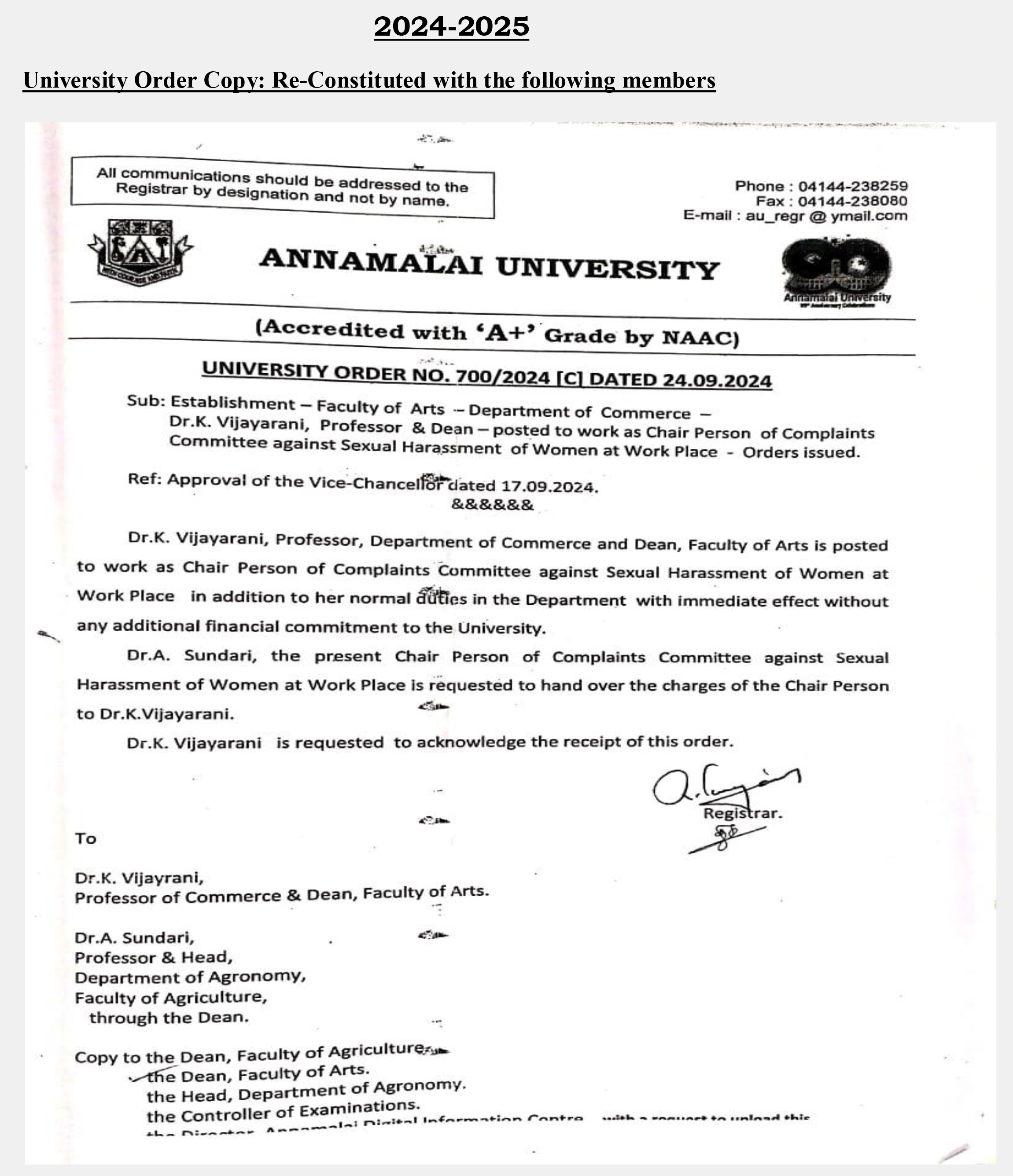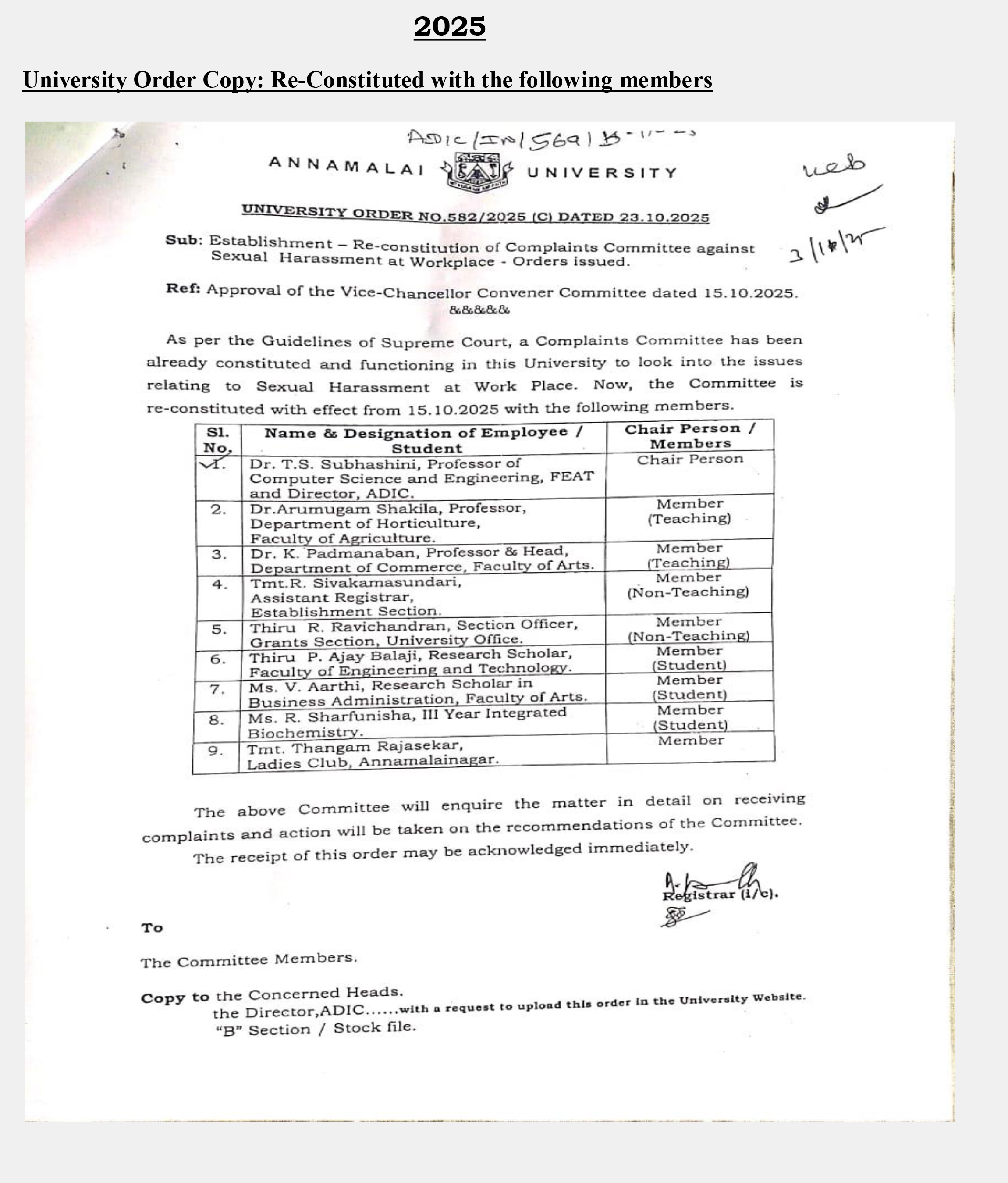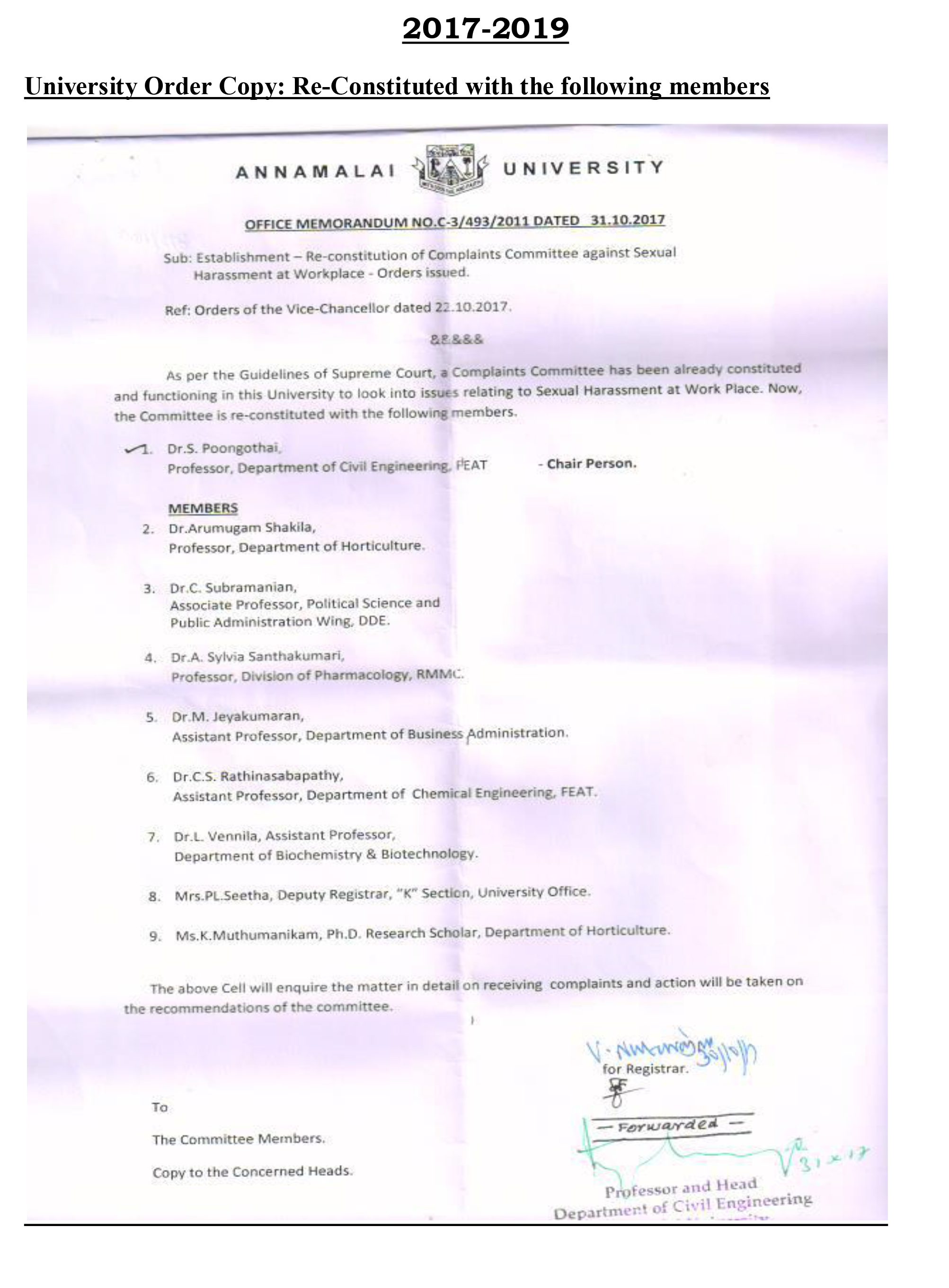 COMPLAINTS COMMITTEE AGAINST SEXUAL HARASSMENT AT WORKPLACE (CCSHAU)