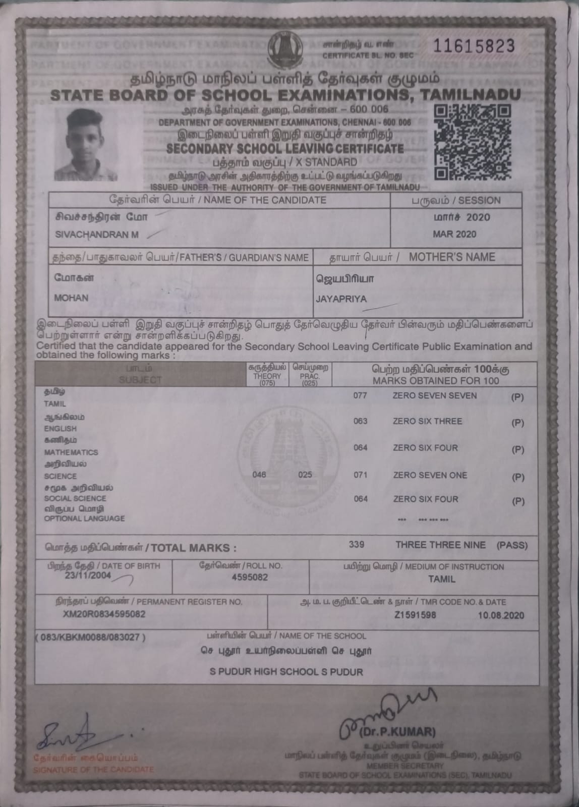 2. 10 th Mark Sheet