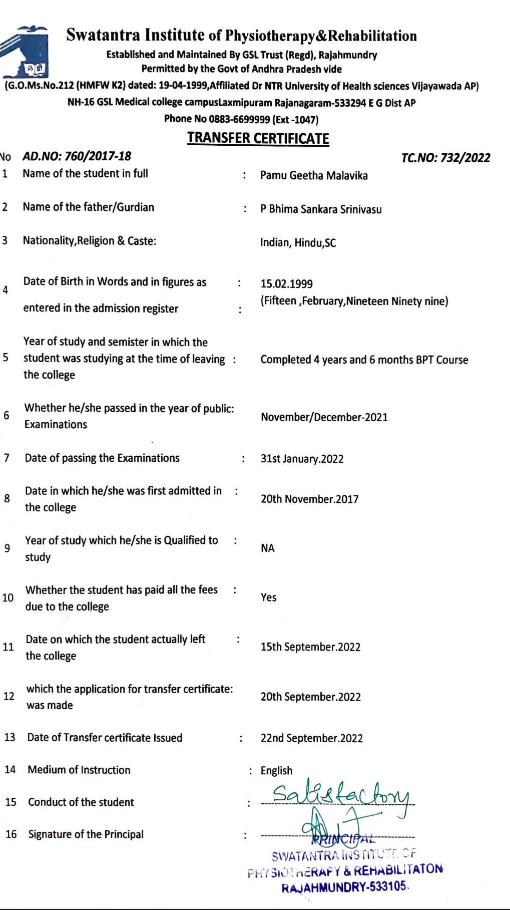 5. Transfer Certificate