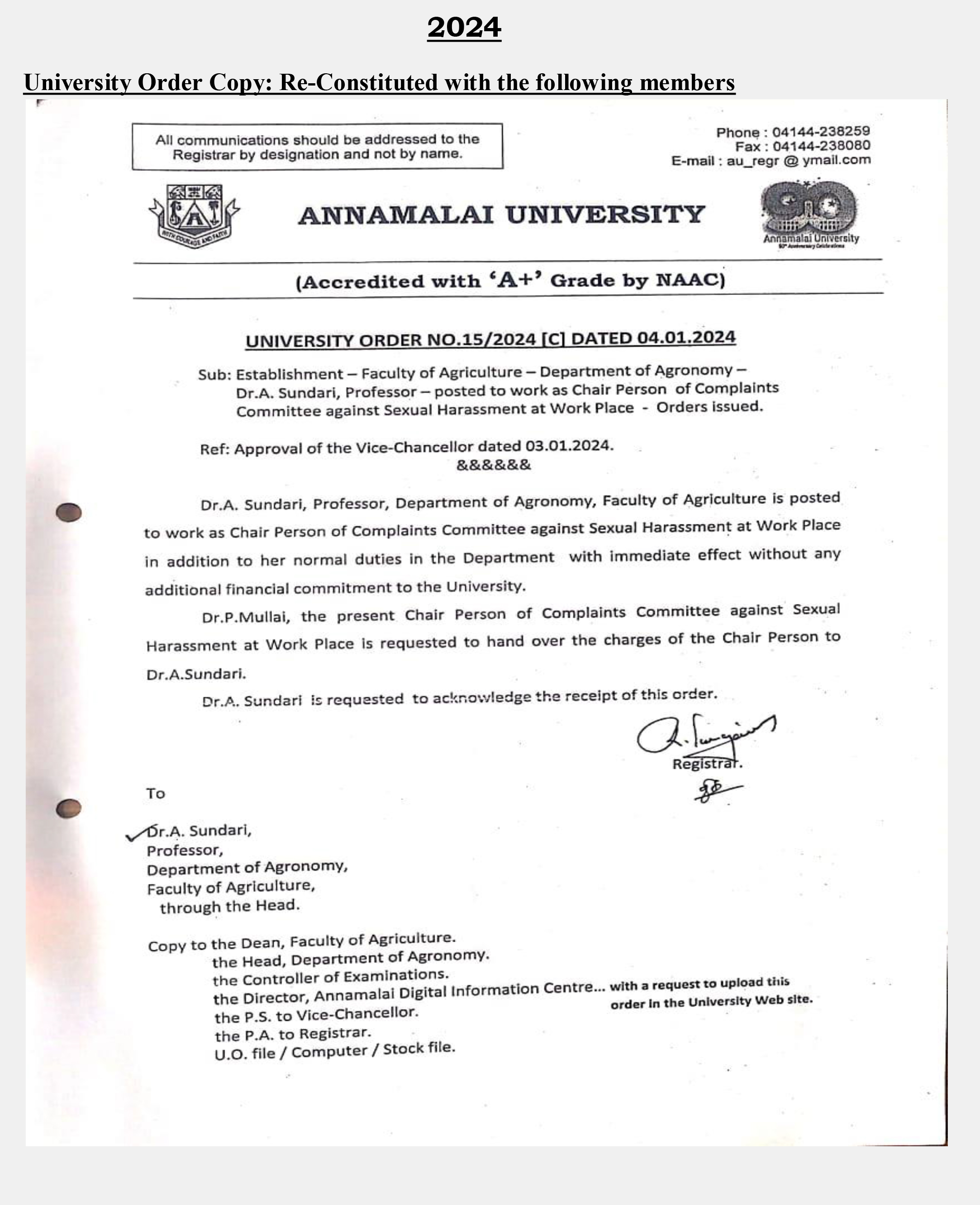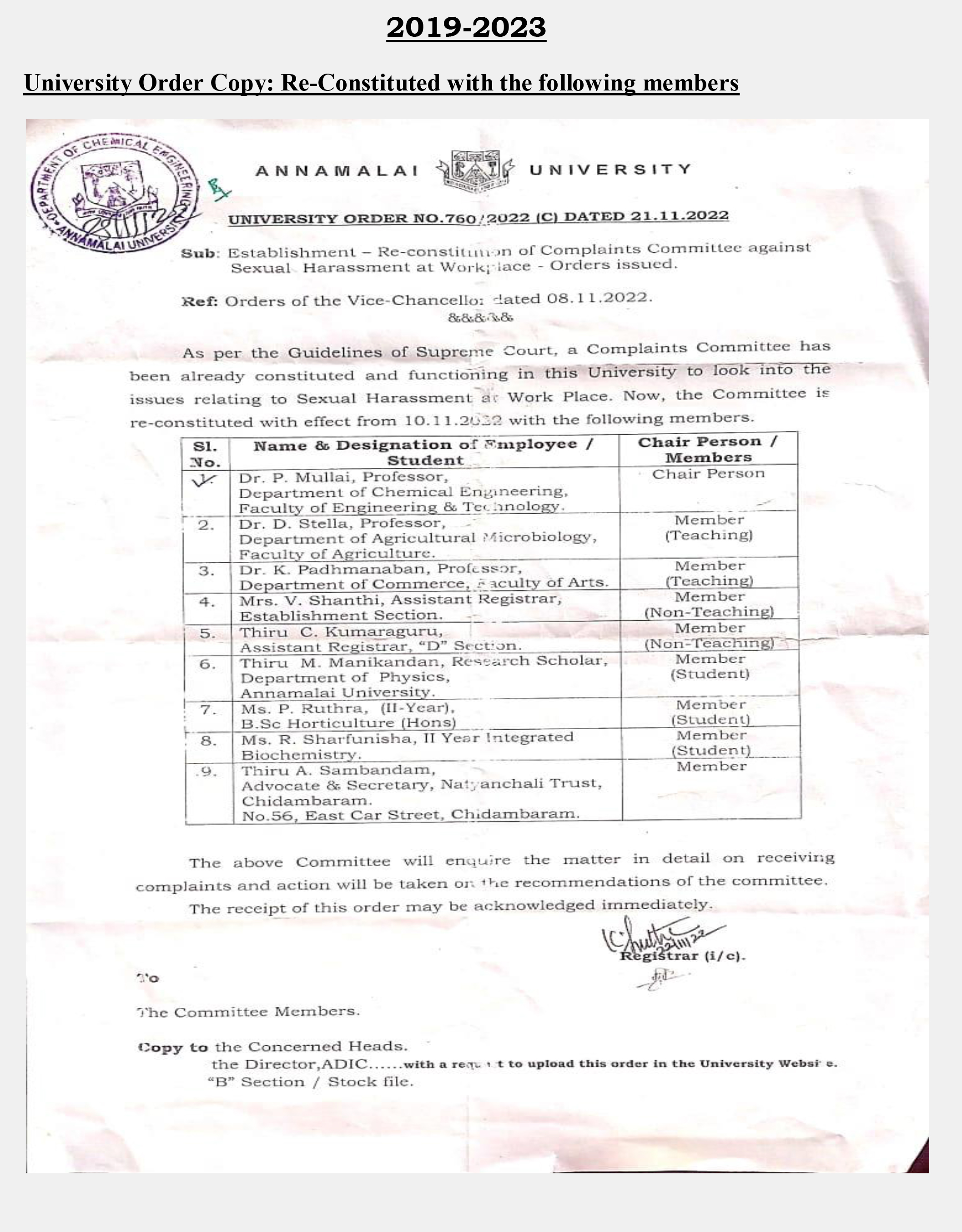 COMPLAINTS COMMITTEE AGAINST SEXUAL HARASSMENT AT WORKPLACE (CCSHAU)