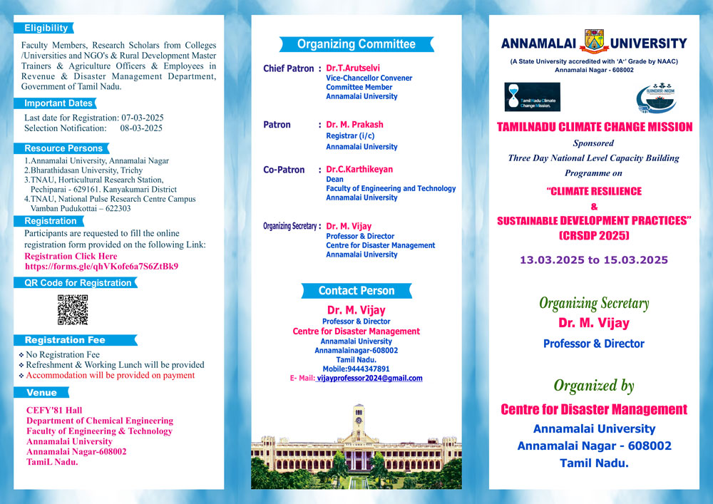 Home > Conferences/ Seminars/ Workshops > Upcoming Events > Three Day National Level Capacity Building Programme on Climate Resilience & Sustainable Development Practices -CRSDP 2025