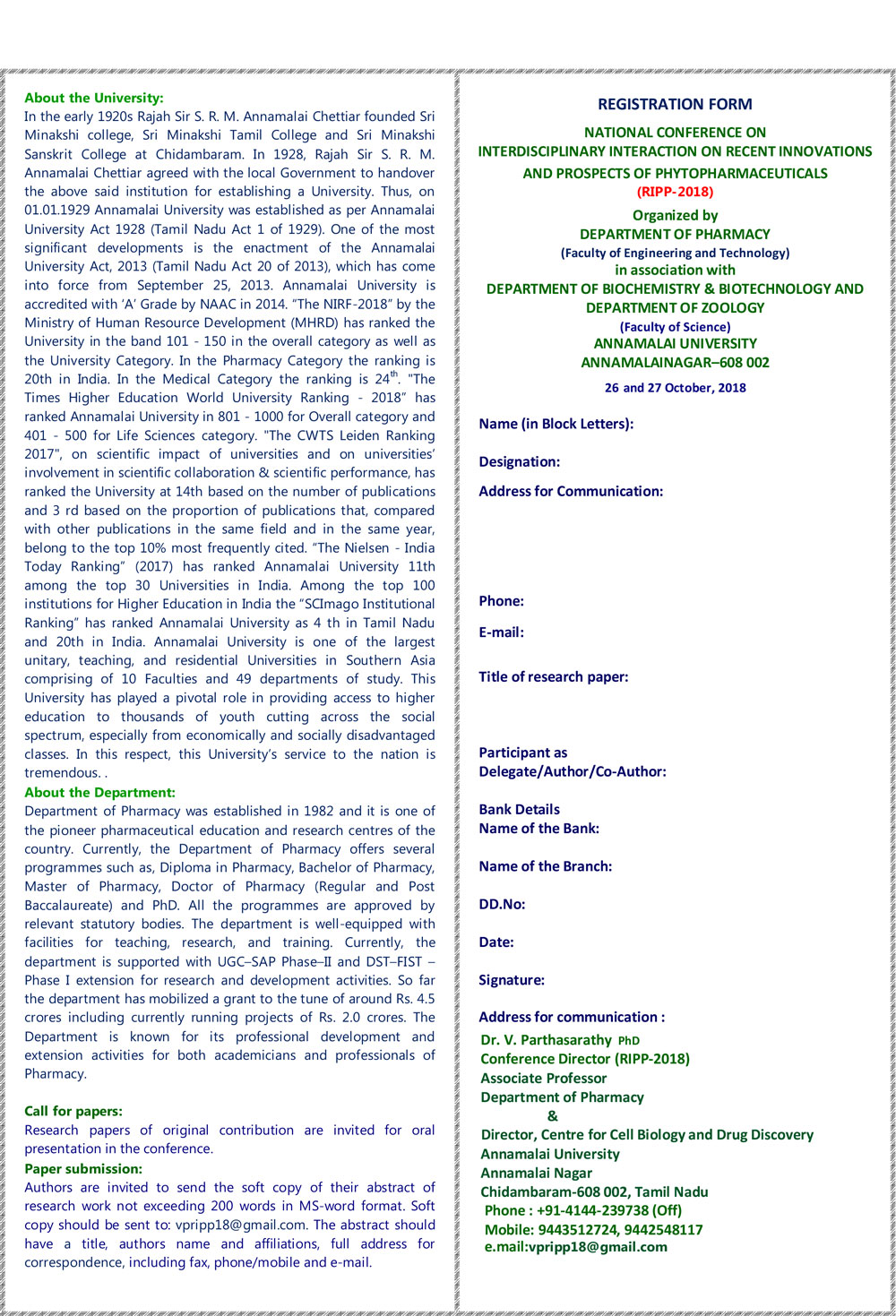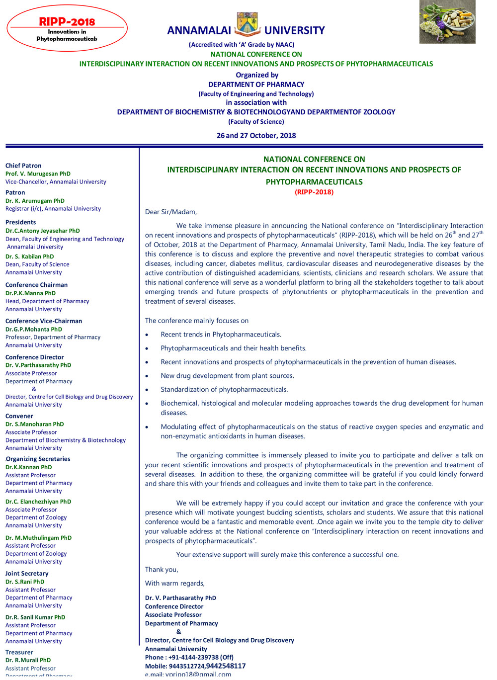 NATIONAL CONFERENCE ON INTERDISCIPLINARY INTERACTION ON RECENT INNOVATIONS AND PROSPECTS OF PHYTOPHARMACEUTICALS