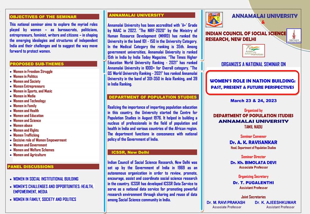 Home > Conferences/ Seminars/ Workshops > Upcoming Events > Indian Council of Social Science Research, New Delhi - Organizes a National Seminar on - Women's Role in Nation Building Past, Present and Future Perspectives