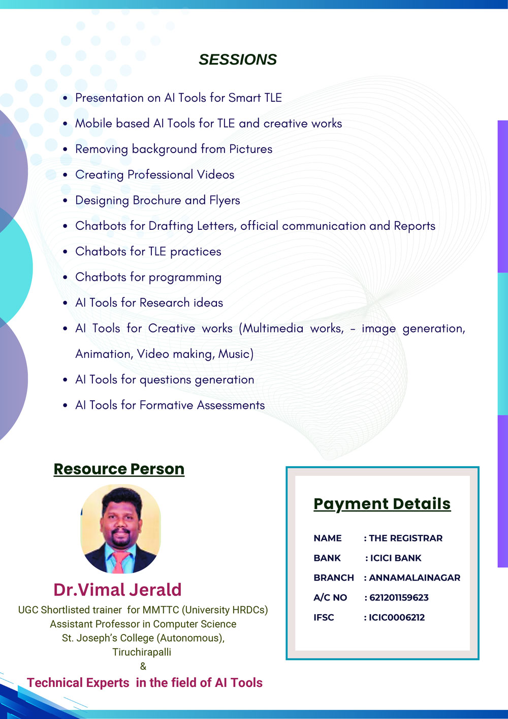 Home > Conferences/ Seminars/ Workshops > Upcoming Events > A One Week Virtual Faculty Development Programme on " AI TOOLS FOR TEACHING"